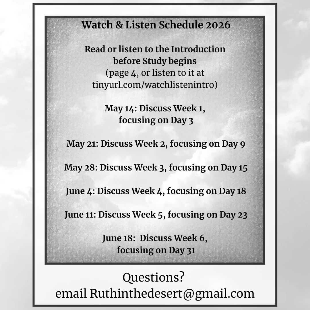 In May and June, I will be leading a study group through my Watch and Listen book. My son and I recorded the Introduction to the book.